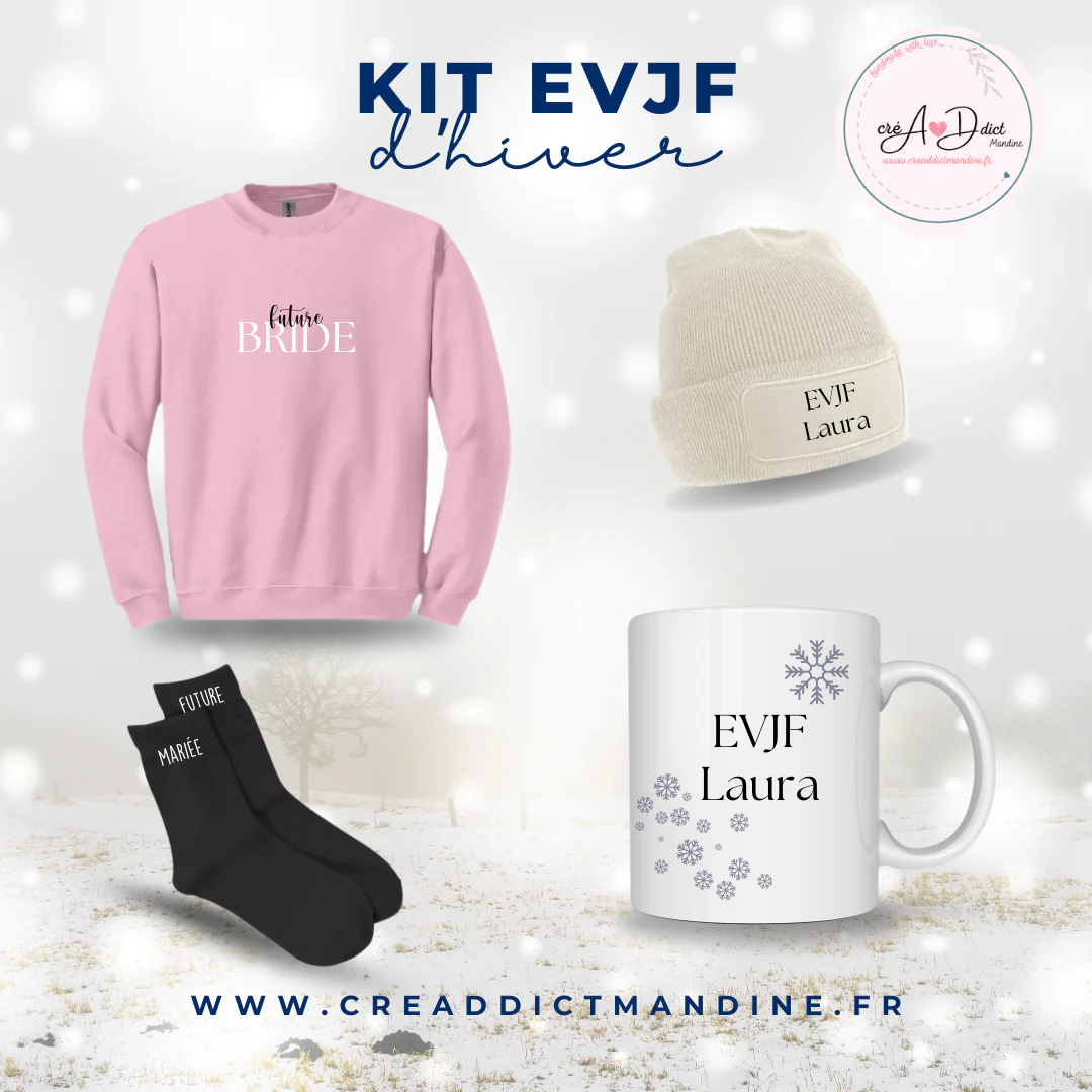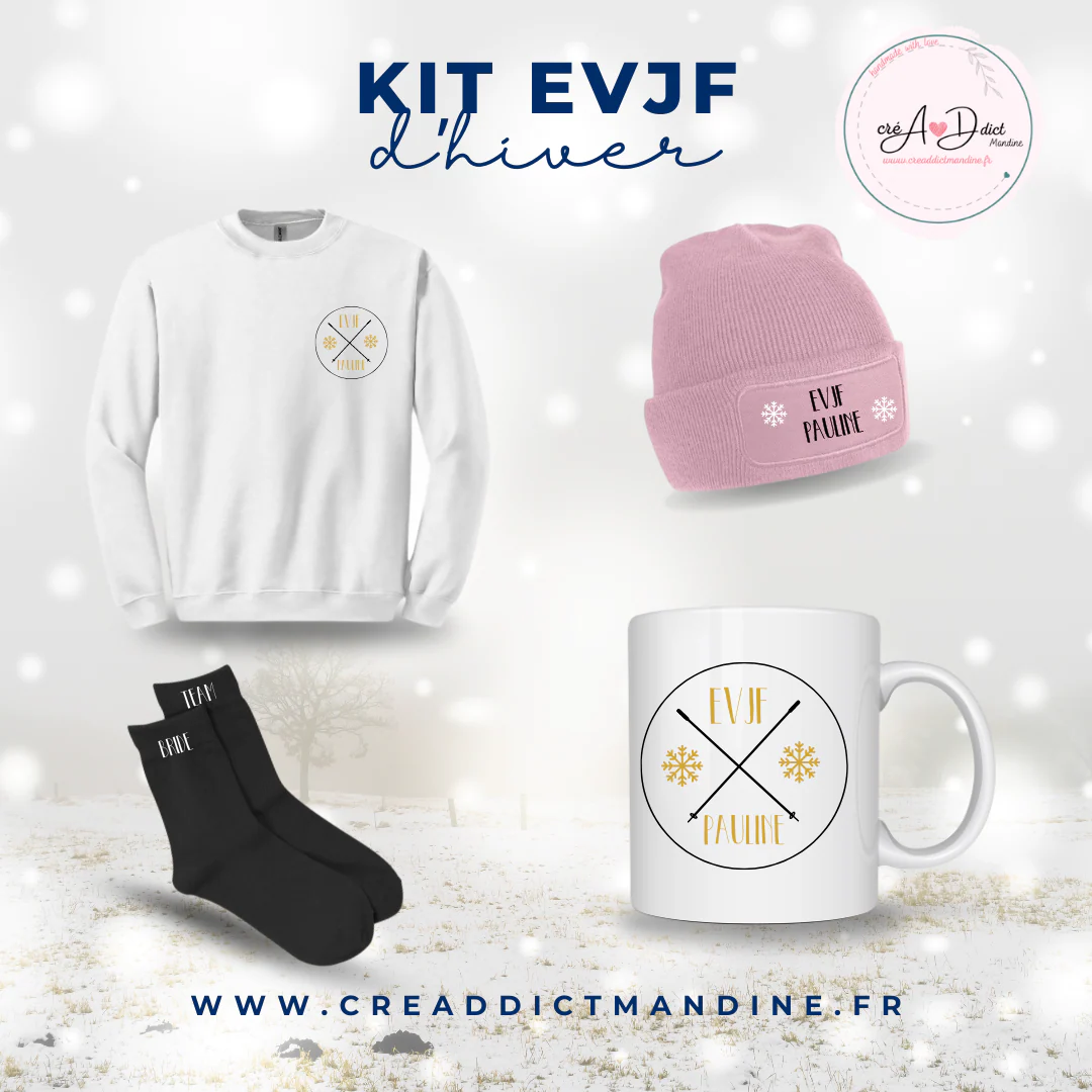 Accessoires personnalisés pour un EVJF spécial hiver ou mariage d’hiver.Choisissez les accessoires de votre choix et ajoutez le texte de votre choix. Vous y trouverez plusieurs accessoires : sweat, bonnet, mug et chaussettePlusieurs coloris sont disponibles, pour une personnalisation unique.A vous de composer votre kit !Les sweats taillent normalement, coupe droite. Comment ça marche ? […]