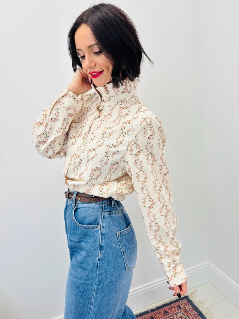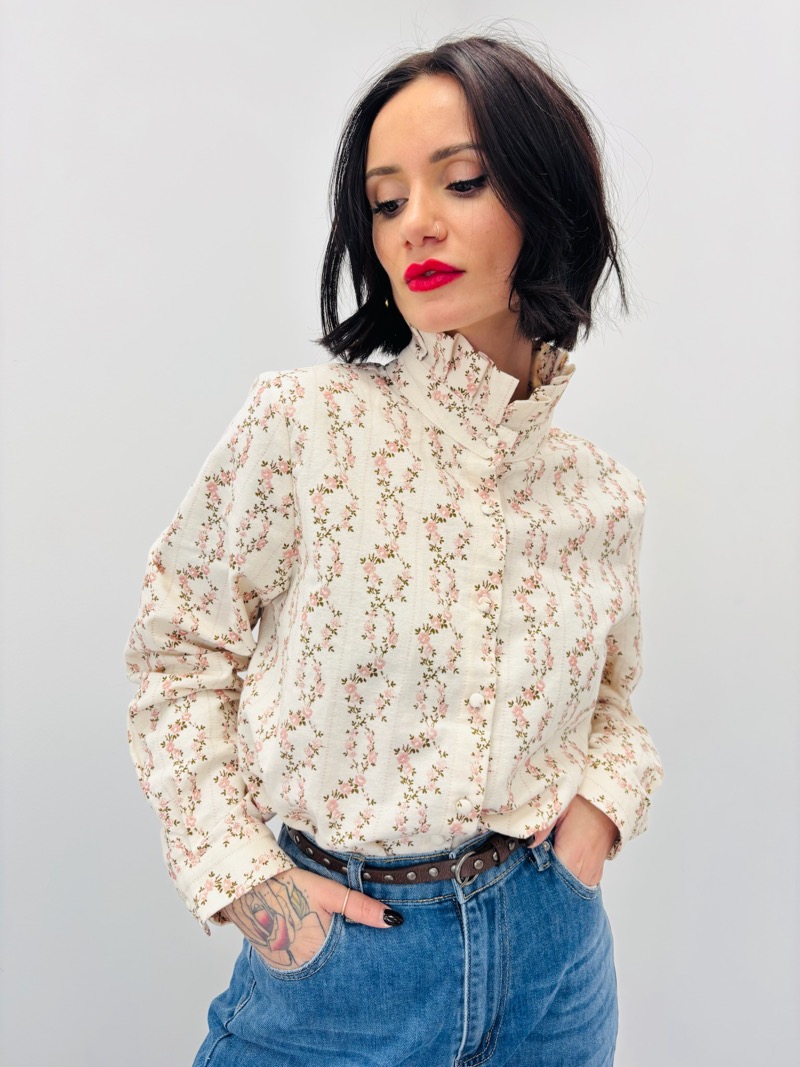Cette chemise en coton imprimé à col victorien incarne parfaitement l’élégance intemporelle et la féminité délicate. Son imprimé floral raffiné, associé à une coupe soignée, en fait une pièce forte et facile à intégrer dans une collection prêt-à-porter féminine à l’esprit chic et bohème.