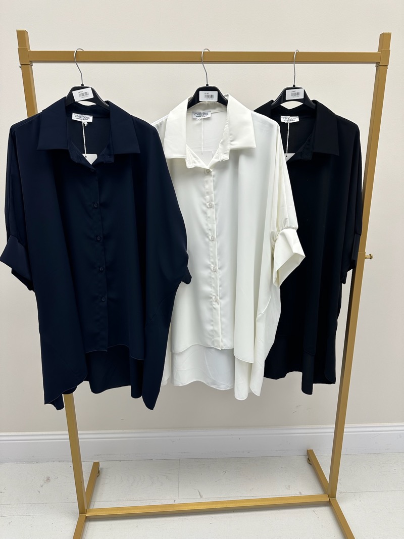 La coupe est pensée pour la grande taille : ample sans être informe, structurée tout en restant fluide. Le col chemise classique apporte une note élégante et intemporelle, tandis que la patte de boutonnage discrète permet de jouer avec le style, ouverte ou fermée selon l’envie. Les manches courtes larges, avec un léger revers, offrent une belle liberté de mouvement et mettent subtilement en valeur les bras.