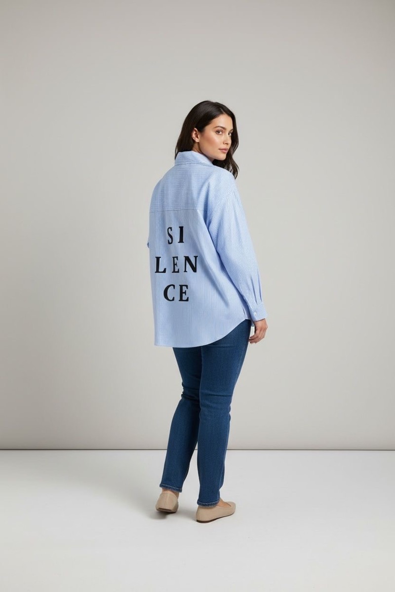 Chemise grande taille rayée à message dos – Élégance moderne & esprit affirmé