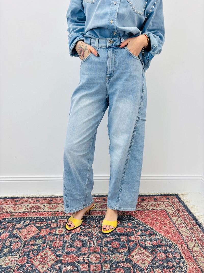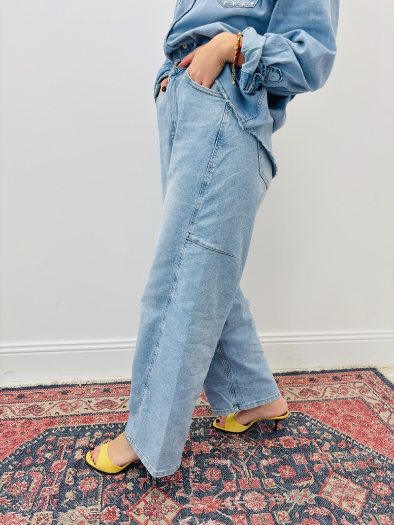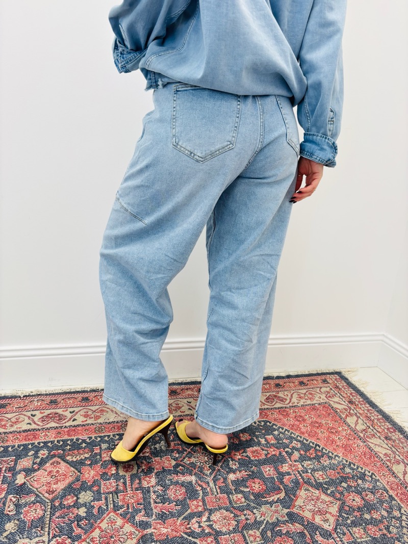 Jean Coupe Barrel Bleu Clair – Allure Moderne & Confort Absolu