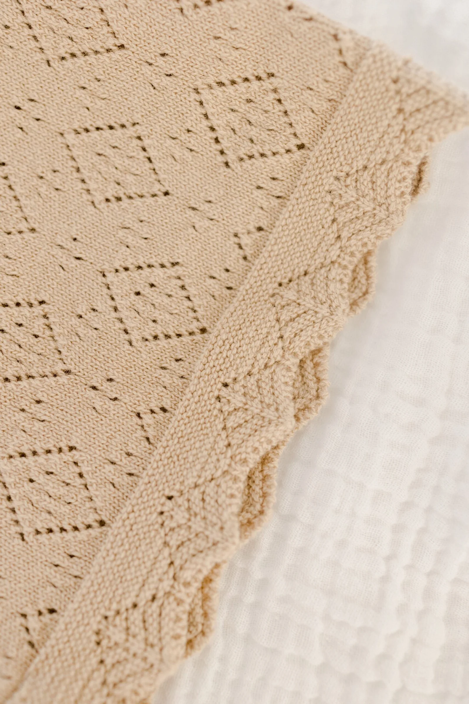 Grande couverture bébé tricotée taupe 100% coton BIENVENUE AU MONDE