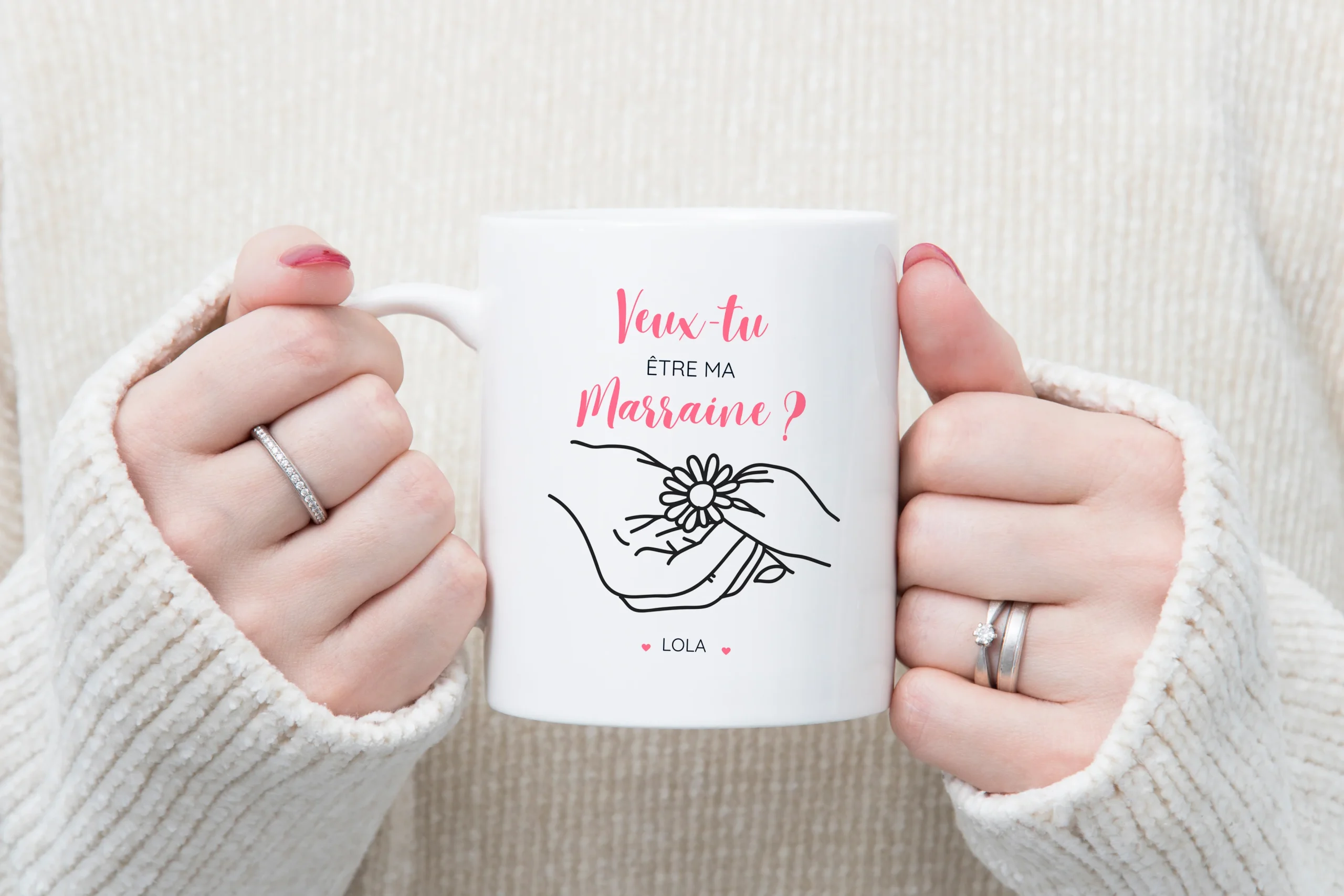 Mug « Demande de Marraine » motif mains