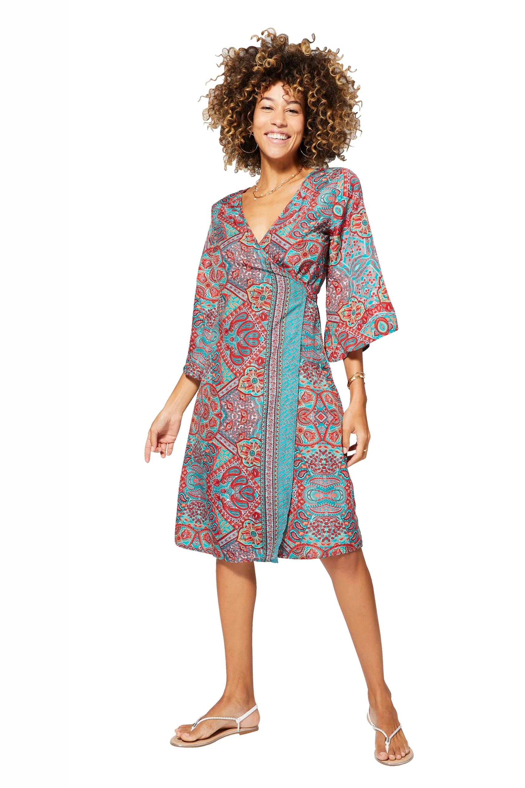 Cette robe d’été mi-longue évasée à nouer, ornée de motifs bohèmes et dotée de manches 3/4, vous garantira une allure à la fois chic et décontractée. Coupe mi-longue évasée Manches 3/4 Robe à nouer Existe en tailles : S/M – L/XL (36/38 – 40/42) 100% Polyester