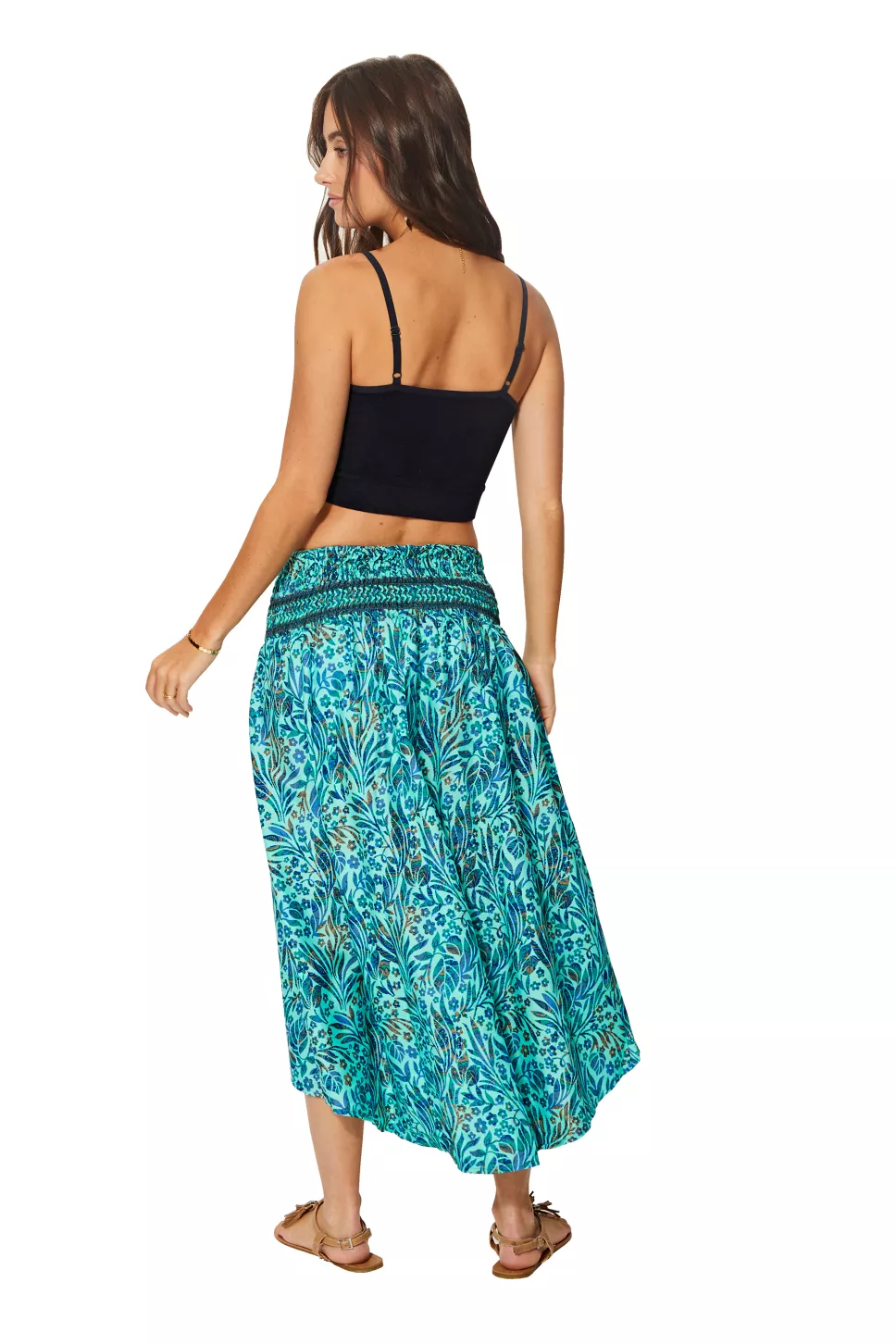 Robe / Jupe 2en1 bleu turquoise motif végétal – JIP0046B