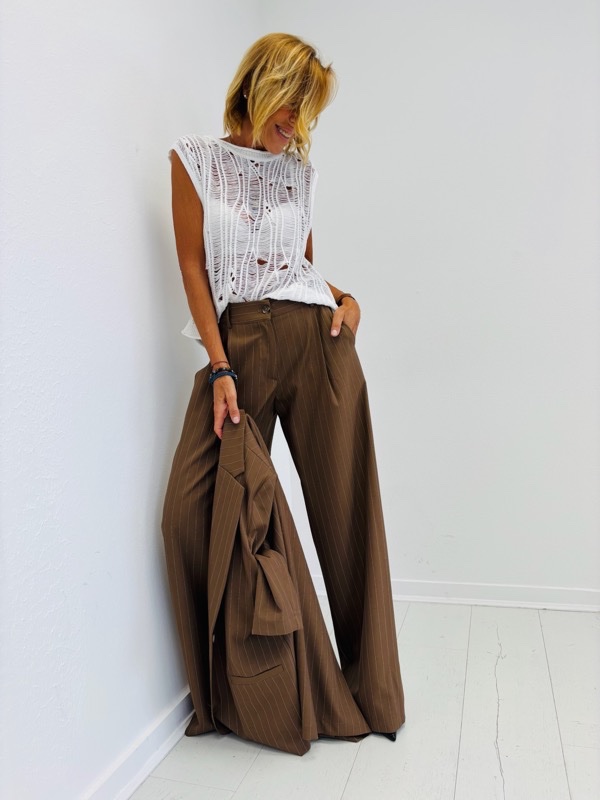 Un top original et tendance qui joue sur la transparence. Sa maille ajourée effet crochet apporte une touche moderne et légèrement bohème, parfait pour superposer sur un débardeur ou un bandeau. Coupe : droite et fluide, confortable à porter. Encolure : ronde classique. Matière : maille ajourée légère, effet crochet. Détails : finition sans manches, […]