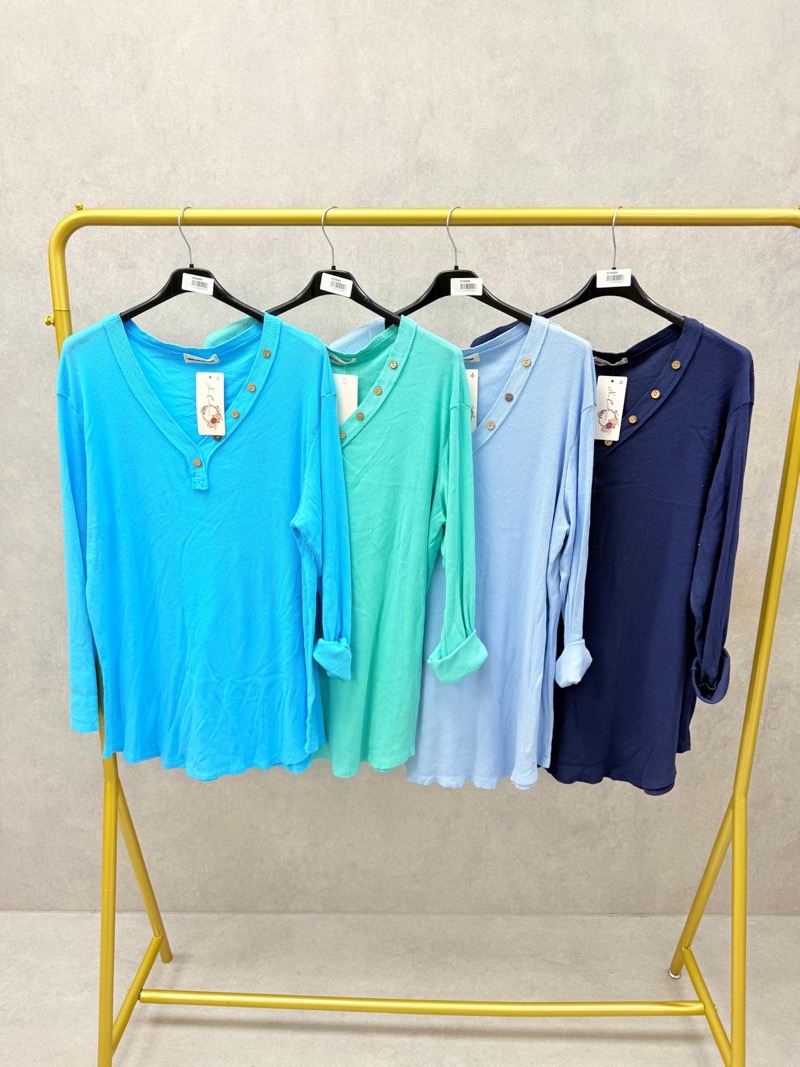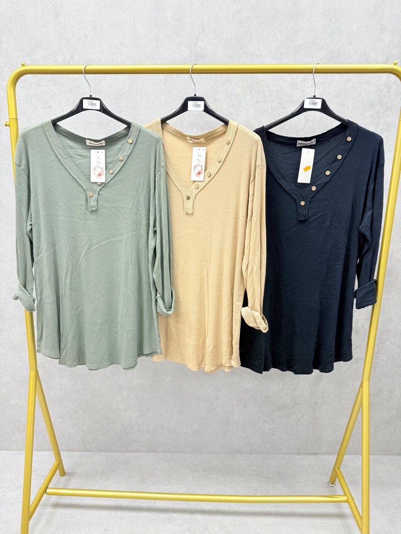 Sa teinte bleu ciel lumineuse et douce illumine le teint et se marie facilement avec de nombreuses couleurs. Cette tunique grande taille s’intègre parfaitement dans une garde-robe casual chic et répond aux attentes d’une clientèle recherchant des pièces simples, flatteuses et faciles à associer. Un modèle polyvalent, idéal pour une offre boutique ou e-shop grande taille.