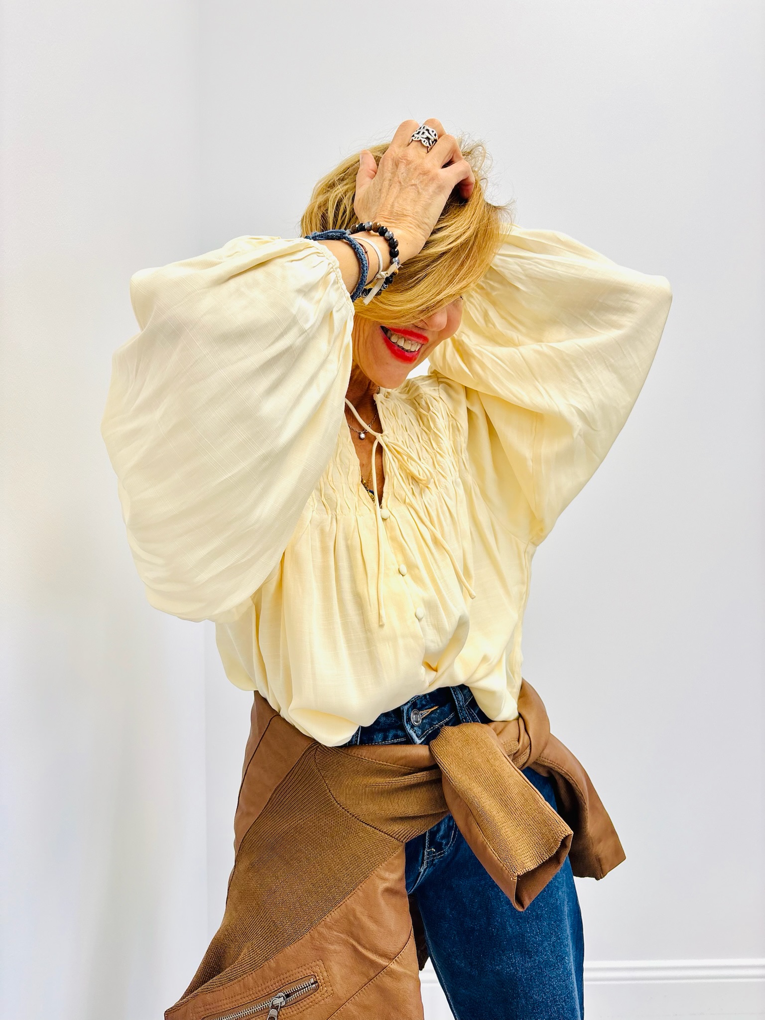 SaleChoix des options Ce produit a plusieurs variations. Les options peuvent être choisies sur la page du produitBlouse Fluide À Nœud Encolure Et Manches Ballon – Marque Ema Blues