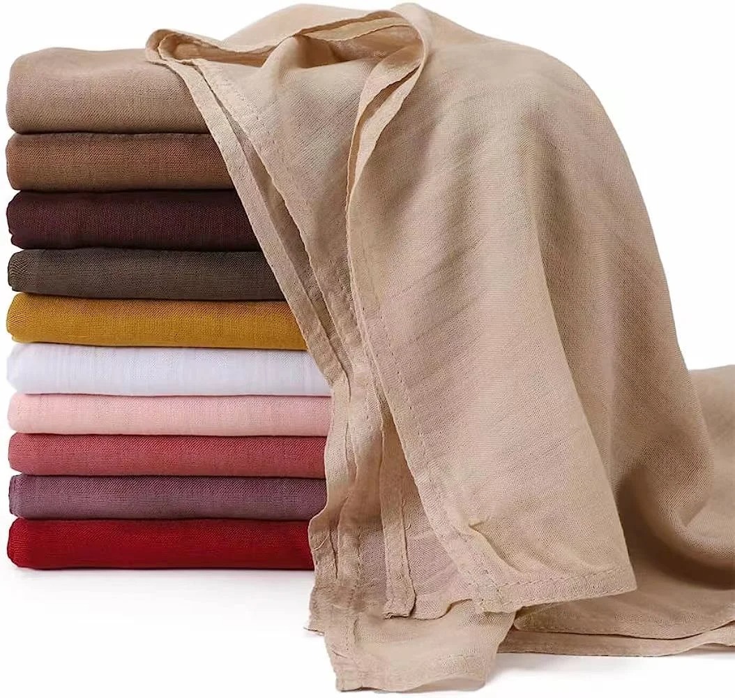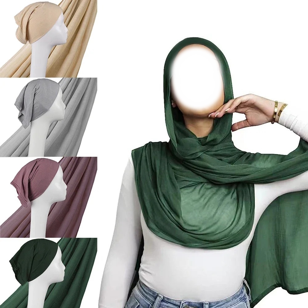 Châle léger en viscose et rayonne – Ensemble hijab uni avec bonnet intégré