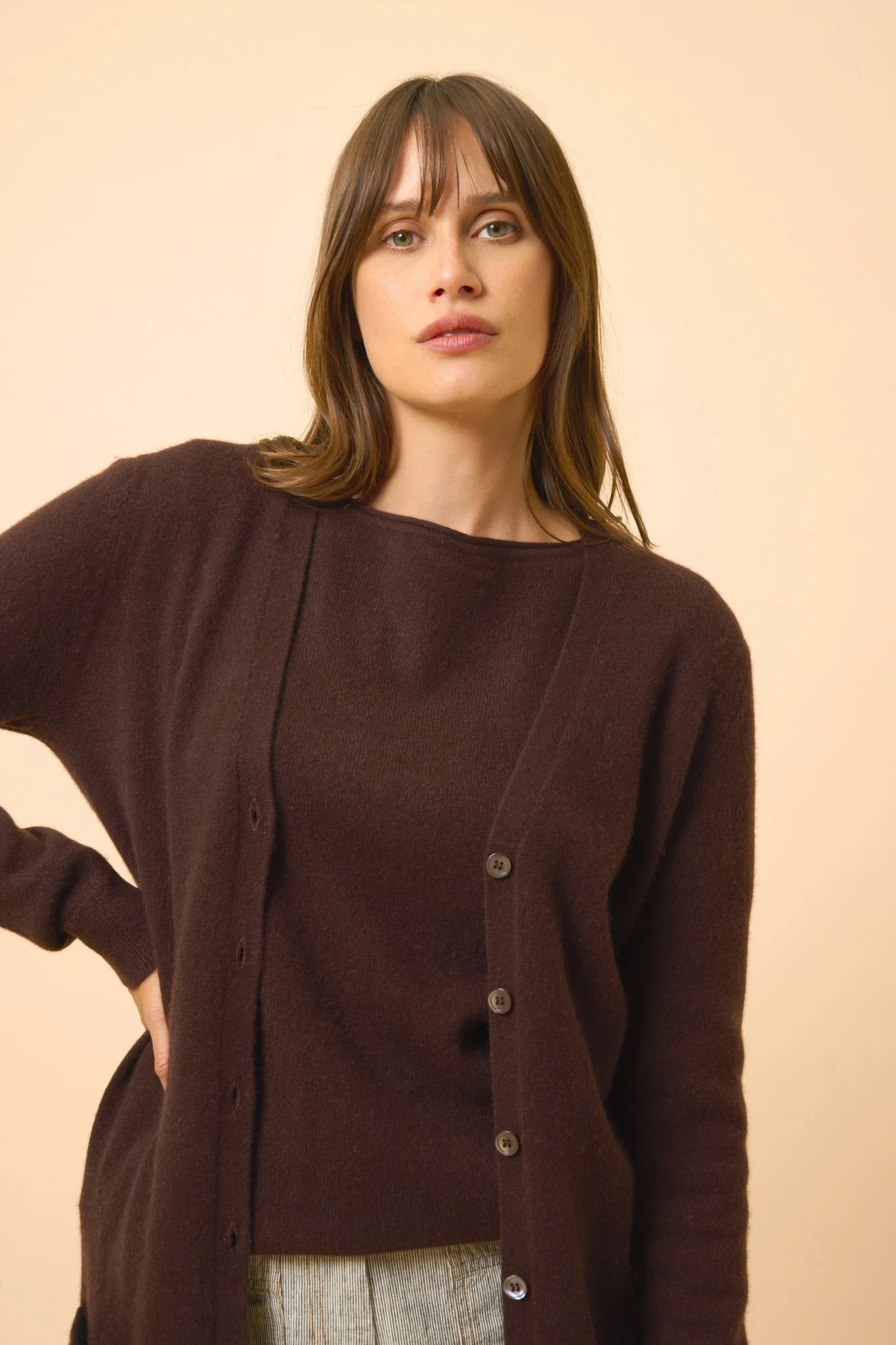CHELSEA cardigan col v choco