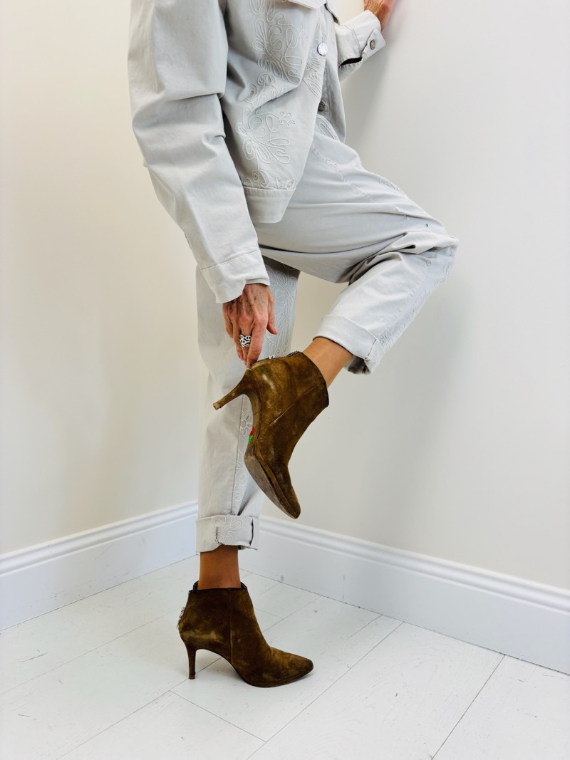 Sur les photos, le pantalon écru est associé à un haut en maille écru perlé, créant un total look lumineux, élégant et très mode. Les bottines camel apportent une belle profondeur à la tenue, parfaites pour la saison.