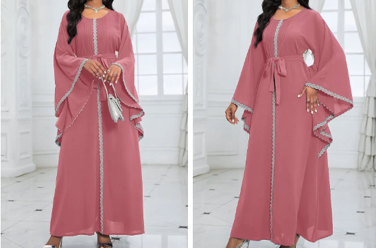 Soyez le premier à laisser votre avis sur “Robe Élégante à Manches Évasées – Dentelle Contrastée & Taille Nouée (Rose)”